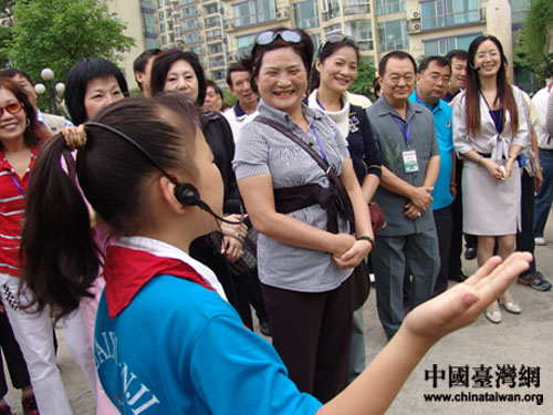 参访博才咸嘉学校时,小朋友们将学校的“海洋世界”、“天文馆”、“世纪畅想”飞天圆梦浮雕等融科学知识于生活的众多景致,一一讲解给台湾客人。他们博学多才、生动活泼的讲解引来里长们阵阵掌声和夸赞。