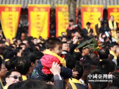 辛卯年黄帝故里拜祖大典开始前。扶老携幼,观者云集。(中国台湾网 马迪 摄)