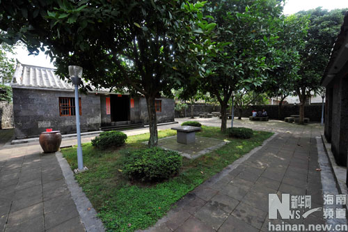 这是海南省海口市石山镇美社文明生态村中一户村民家的庭院,房屋都是由火山石建造而成(1月6日摄)。