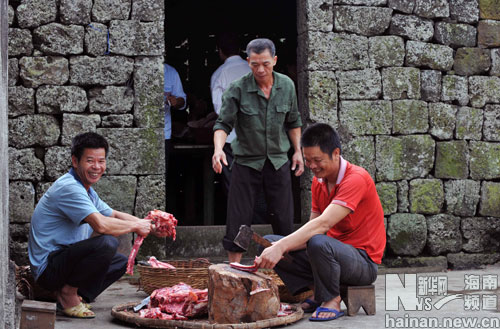 海南省海口市石山镇美社文明生态村中一户人家正在准备结婚喜宴(1月6日摄)。