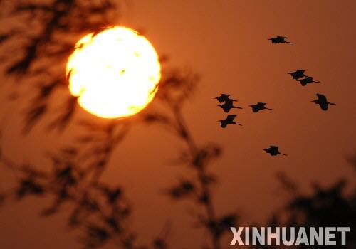 这是海南省屯昌县湿地几只晚归的白鹭。新华社记者姜恩宇摄