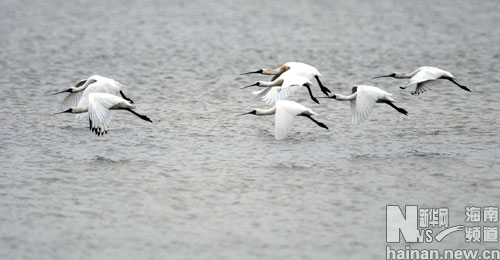 珍贵的国际濒危侯鸟黑脸琵鹭 新华社记者姜恩宇摄