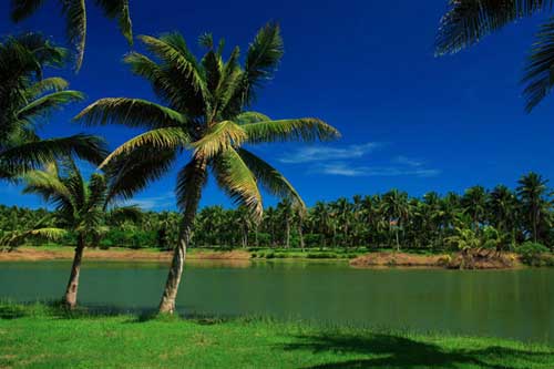 东郊椰林:位于文昌市东郊镇,与著名的清澜港相邻,这里是椰树的王国,身处其中时,不管把视线投到哪里,都能看到高矮不等、斜直各异、婆娑多姿的树林。这里有50多万株椰树,有红椰、青椰、良种矮椰、高椰、水椰等。椰子水被当地人称为天水,清甜甘美。