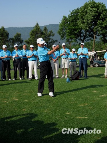 5月24日上午,第二届海峡两岸退役将军高尔夫球邀请赛在南京开赛,来自台湾及大陆的40余位退役将军在南京“挥杆球叙”,以球会友。 中新社发 唐娟 摄
