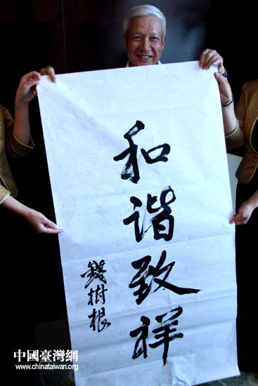 来自台湾的陈廷宠上将的“和谐是福”获得一致好评(中国台湾网 李徽 摄)