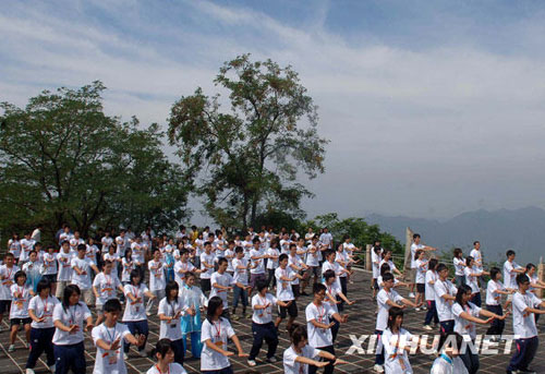 7月15日,参加“两岸青年舞太极聚长城”活动的学生在长城上学练太极。新华社发(卜向东 摄)