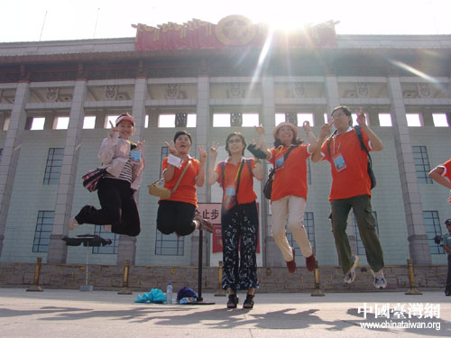夏令营北京行程的最后一天,营员们一大早就来到了北京天安门广场。天安门城楼、人民大会堂、人民英雄纪念碑、国家博物馆前的奥运倒计时牌,都成为了营员们留影的热点。(赵春旭)