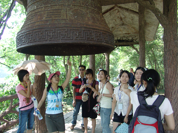 学生们试图敲响君山上的大钟。