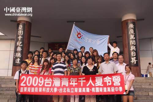 河南省办主任宋丽萍向台湾育达学院学生代表授夏令营营旗并宣布2009年台胞青年千人夏令营河南分营开营。“飞扬青春、感受中原”台胞青年千人夏令营河南分营活动正式拉开帷幕。