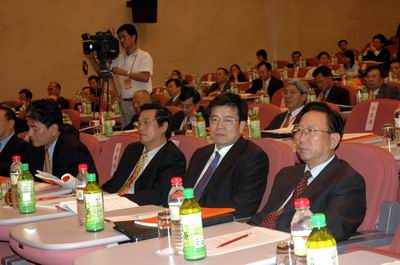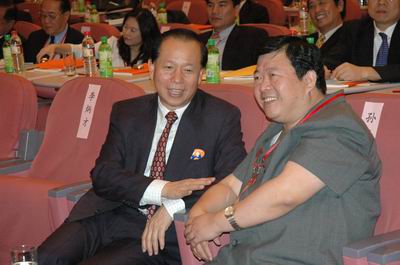 中台办副主任孙亚夫(左)与亲民党秘书长秦金生在论坛上交谈。人民网记者 何晶茹摄  来自海峡两岸的著名经济学家,农业、金融等领域和行业协会的负责人,企业界人士,以及研究两岸关系的专家共120多人参加本届论坛。人民网记者 何晶茹摄 (人民网)