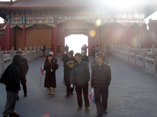 11月27日-30日,第三届海峡两岸沿海地区资源、环境与可持续发展学术研讨会在天津大学举行。30日上午,各位来自台湾地区专家学者参观了故宫博物院。此次行程给他们留下了深刻的印象,被故宫博物院的宏伟气势折服,并希望能够有机会再次到大陆来参观。图为台湾专家学者在故宫博物院门前。
