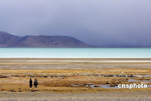 图为青藏铁路畔的藏族牧民。