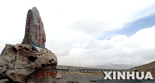 经过长达五年的艰苦奋战,十万筑路大军在“世界屋脊”抒写壮丽诗篇,建成世界上海拔最高的钢铁巨龙――青藏铁路。青藏铁路从西宁至拉萨全长1956公里,是世界上海拔最高、线路最长、穿越冻土里程最长的高原铁路,被誉为“离天最近的铁路”。7月1日,青藏铁路将全线通车,使几代中国人铁路修进西藏的梦想实现。 新华社记者刘卫兵摄