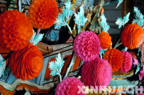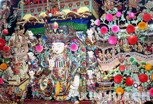 这是塔尔寺艺僧创作的酥油花作品,造型精美,栩栩如生,技艺高超,巧夺天工(摄于2月12日)。始建于1379年的中国黄教圣地塔尔寺是藏传佛教格鲁派创始人宗喀巴的诞生地,坐落在西宁市湟中县宗喀莲花山中。这里殿宇、佛塔林立,古树参天,壮丽豪华。塔尔寺是青海藏区佛学界的最高学府,现设有显宗、密宗、时轮、医明四大学院(经院)。酥油花、壁画、堆绣被誉为塔尔寺“艺术三绝”,因其具有很高的工艺水平和观赏价值而闻名海内外。置身于此,藏传佛教文化的博大精深让人恍如走进艺术的天堂,而它来自偏远的雪域荒原。塔尔寺距青藏铁路西格段起点西宁市26公里,海拔约2500米。 (青海分社记者侯德强与西藏分社记者觉果合作摄)