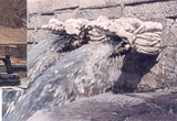 泉池四周由花岗石板砌成的多边形图案, 中央一股清泉从池地蓦然喷涌而出,形成一个晶莹透明的蘑菇状,将无数片碧玉般的花瓣抛向四周,似一朵盛开的莲花,又似无声四溅的碎玉落入一泓清池,然后奔向滔滔的昆仑河。经科学鉴定,该泉水属低矿化度重碳酸氯化物、钙镁型矿泉水。它喷出地层前,在地下蕴藏潜流达20余年,从周围环境中溶解锶,钙、钾、碳酸氢根等对人体健康有益的化学元素。其中锶含量达0.7毫克/升,对治疗高血压、心脏病、动脉硬化等疾病有较好的疗效,为优质、天然饮用矿泉水。