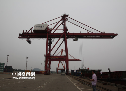 7月2日,两岸媒体联合采访团来到江苏省南通港。据南通海事局6月份的统计,两岸直航以来,抵达南通港的从事两岸直接经贸往来船舶达到64艘次,货物吞吐量近35万吨。 (中国台湾网 赵静摄)