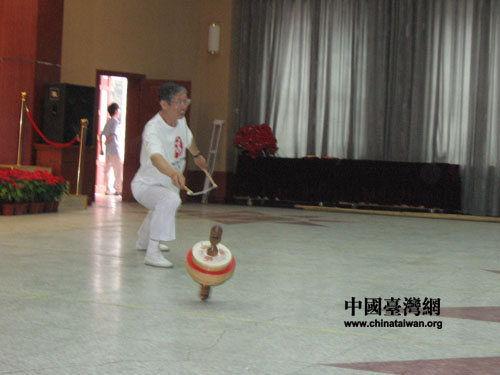 中国台湾网7月13日北京消息 今天上午,台湾莺歌高职扯铃队参观了北京市丰台二中,并与二中的学生,分别进行了抖空竹表演。在演出现场,本网记者就两岸空竹艺术的发展特色专访了北京玩具协会空竹委员会副主任刘振钰老先生。