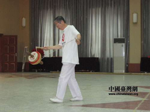 谈到两岸空竹艺术的特色,刘老向记者介绍道,在台湾,抖空竹叫做扯铃,他们的活动开展得比较普遍,拿学校来说,大中小学都普遍开展空竹活动,踢毽、跳绳、抖空竹,这些民族传统的项目,他们很重视。同时还鼓励学生们创新新的花样。在台湾来说呢。还把抖空竹作为对外交流的方式。他们还成立了扯铃协会,进行推广。我们在教学生抖空竹的时候,也经常会介绍台湾的情况。在技术方面,台湾普遍比较好,尤其是双头,水平比大陆要高,花样也多。并且鼓励创新新的花样。