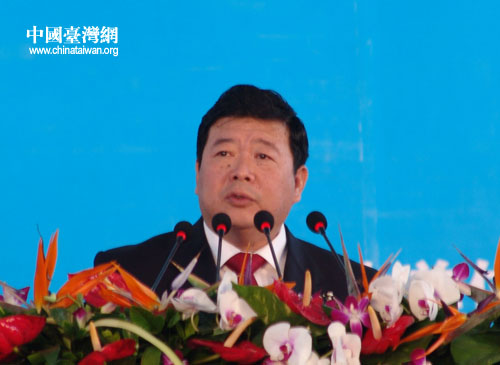 第四届中国西部海峡两岸经济科技博览会在蓉开幕,图为中台办、国台办副主任孙亚夫在开幕式上致辞。(张弛 摄)