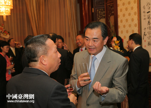 2008年8月27日,中共中央台办、国务院台办主任王毅在钓鱼台国宾馆举行欢迎酒会,欢迎前来北京出席台商座谈会的台湾工商界人士和大陆台商代表。王毅主任在欢迎酒会上致辞表示,广大台商一定会着眼长远,抓住机遇,化解挑战,与时俱进,在大陆经济发展的大潮流中得到更好更快的发展。