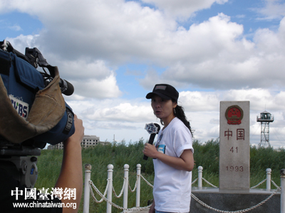 台湾TVBS电视台记者在介绍中俄边境线