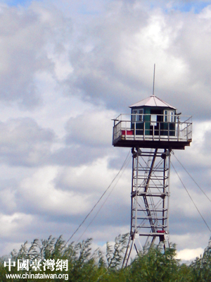 在距离两国国门不远的地方分别矗立着一座高塔,这就是中、俄两国的边境瞭望塔。看到有记者对瞭望塔十分感兴趣,导游亚齐半开玩笑的提醒,不要随意穿越国境线,可别因为一时兴起而导致国际纠纷。