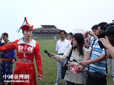 中国台湾网7月17日呼伦贝尔消息 昨天上午,海峡两岸记者联合采访团来到位于呼伦贝尔市的金帐汗蒙古部落,深入了解蒙古族人民的生活习俗和饮食文化。