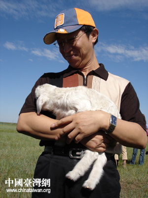 中国台湾网7月18日新巴尔虎左旗消息 见识了达斡尔族牧民家庭牧场之后,海峡两岸记者昨天来到了新巴尔虎左旗大草原,零距离的接触了羊群。