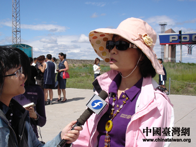 边境线上代表中国国界的石碑旁,留影的游客络绎不绝,两岸记者也抓住这个难得的机会,在国界上留下了最灿烂的笑容。巧合的是,记者在游客中也发现了台湾同胞的身影。来自台北的陈女士一家四口每年都会趁着假期来大陆游览祖国的山水名胜,从南到北走过了很多地方,到过最北的城市是漠河。这次来到内蒙古,陈女士表示,这里的风景和台湾是完全不同的类型,草原的景色很漂亮,不亲眼看到是根本无法想象的。经常来大陆旅游的陈女士还说,每次来大陆都感觉很舒服,因为我们都是中国人,不管去到什么地方都会觉得很亲切。