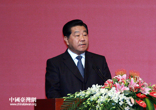 图:贾庆林在两岸农渔水利合作交流会上致辞