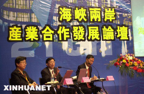 图为台湾玉山科技协会理事长刘兆玄(中)发表题为“从人才培养谈高科技产业”的演讲(2001年10月19日摄)。 新华社发