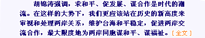 胡锦涛就两岸“三通”讲话。两岸春节包机航班确定。赠台大熊猫乳名揭晓。