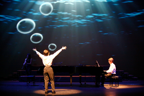 音乐家范德腾(John Vaughan)和他的学生许哲诚,两人除了对音乐充满热情之外,也喜欢「听」表演。2008年,导演丁乃筝与多年好友John在一次聊天后发现,或许可以发展出某种奇特「戏剧+音乐」的演出。在一切都是未知的状况下,2009年1月,「三个人+两架钢琴」开始尝试、摸索。两位非职业演员,确实专业音乐家的合作,反而开启另外一种对话的可能性:音乐。在导演丁乃筝的带领下,以戏剧串联古典乐、蓝调、流行乐及生活中熟悉的旋律或歌曲。