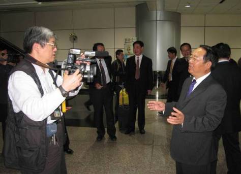 于冲局长在桃园机场接受台湾《联合报》记者采访