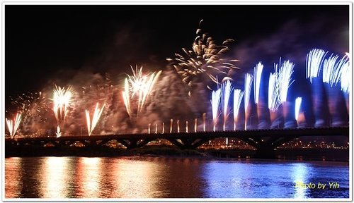 虽然花火节的活动与烟火施放是在大稻程码头,你若是要看表演与烟火秀,大稻程绝对是最佳场所,不过得去跟大伙人挤人,如果你纯粹只是要拍烟火,那里却不是摄影的最佳场地,一方面是人太多了,再一方面离烟火施放太近了,不太容易拍。有时高空烟火就在你头顶上施放,那就只能拍大大的烟花,一点景都没有 。