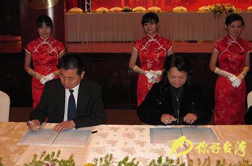 田纪明董事长(左)在启动仪式上签署合作协议(图片来源:你好台湾网)