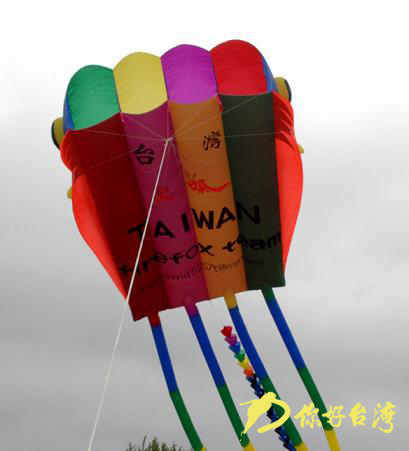 台湾新竹特技风筝运动协会放飞队队员准备放飞风筝