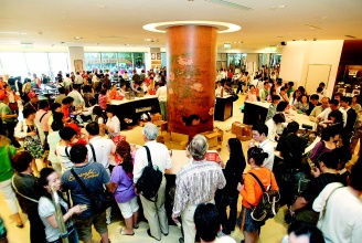 团员到达孙中山纪念馆后,立刻冲下车在馆内馆外狂拍照,800人仅短暂停留半个小时,便搭游览车前往信义区新光三越。