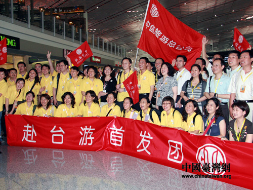 “赴台游首发团”,即将踏上宝岛的大陆游客无比欣喜。(摄影 李徽)