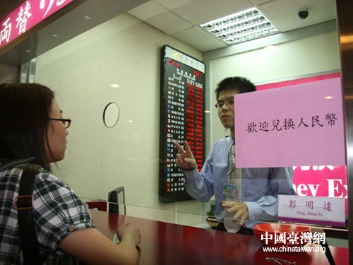 服务周到,桃园机场一落地,大陆游客就能享受人民币兑换服务。(摄影 李徽)