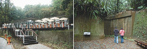 右:后慈湖步道上一处战备隧道入口,走进去可通往慈湖灵寝。(记者朱家莹/摄影)