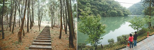 在1号和2号办公室间,有一片台湾肖楠林,树龄约二、三十年,林相优美,走在林间步道,即使在盛夏也觉清凉。
