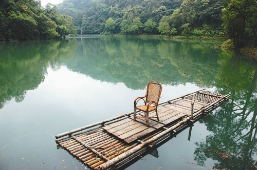 往昔蒋介石前往后慈湖都需搭乘竹筏,至今竹筏上他专用的藤椅,仍在慈湖一角静静等候主人。(记者朱家莹/摄影)