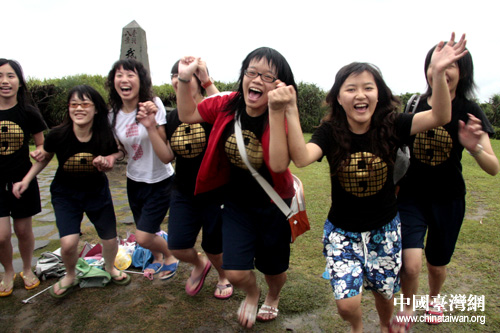 台湾学生在鹅銮鼻前大声呼喊欢迎大陆游客来台