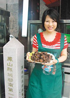 中新网9月28日电 据25日的台湾《联合报》介绍,岛内凤山市凤松路开张的七婶婆花雕排骨酥店,店址设在清朝“凤山县城郡南第一关”界址旁。老板刻意选在这儿开业,就是纪念百年前清朝嘉庆皇帝与当地村妇“七婶婆”一段美食相遇的历程。