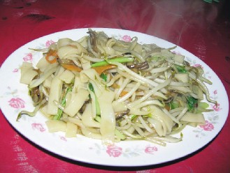 “村居”提供的炒粄条、客家小炒、姜丝炒大肠等是游客常点料理;结合客家小炒、宫保鸡丁、黑胡椒牛柳的套餐是情侣最爱。