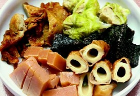因为没有菜单,全凭客人看着锅内煮料挑选,种类繁多的关东煮,从软Q猪血糕、、高丽菜卷统统有,店家手工制作的牛蒡天妇罗,脆脆的牛蒡丝,虽然经过热汤熬煮仍保持口感,更成为一大招牌。