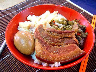 老板对食材上的选择非常讲究与用心,使用花莲在地的新鲜猪肉。焢肉的制作过程非常费工,需腌制半小时,煎过后再加入特制的香料与酱汁,先以快火炖煮半小时,最后在用小火熬半小时才能完成这肉香四溢的焢肉,吃起来滑嫩不油腻且入口即化,再配上酸菜、笋丝、卤蛋,更是令人回味无穷!