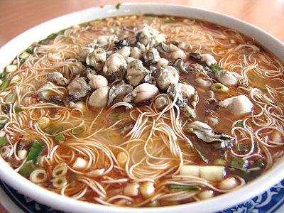 七股三宝,即为鲜蚵、虱目鱼、吴郭鱼。来到七股除了随处可见蚵田之外,这里以蚵为料理的特色佳肴鲜蚵面线,绝不能错过。鲜蚵面线是以麻油面线加上鲜蚵,淋上葱花,麻油面线的香加上鲜蚵的甜,化在嘴中真是说不出的美味。