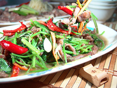 位于民生路上的三和鹅肉,是一间有三十五年历史的山产料理店,以水里地方的山产、溪产及野菜等多样的食材,做出一道道美味而地道的佳肴。老板娘林女士就特别推荐酥炸溪虾、炸溪鱼、山芹菜炒山猪肉、白斩鹅肉等几道人气料理,都是水里原味的美食。